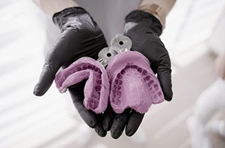 A mold of teeth and gums to use for fabricating prosthetics and restorations.