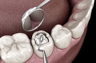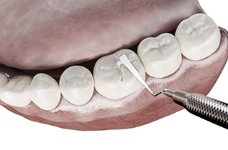 Amalgam or composite resin material that replaces tooth decay.