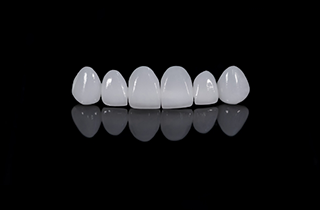 Cosmetic dental treatment that involves lab-made porcelain or plastic wafers bonded to front teeth to mask chips, cracks, misalignments, or other imperfections.